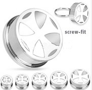 316L Surgical Steel Hollow Celtic Cross Screw Fit Tunnel