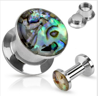 316L Surgical Steel Shell Inlay Top Double Flared Screw Fit Plug SIZE : 8GA 6GA 4GA 2GA 0GA 00GA 1/2''9/16'' 5/8'' 3/4'' 7/8'' 1''