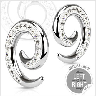 316L Surgical Steel Swirl Taper with Paved Gems in White