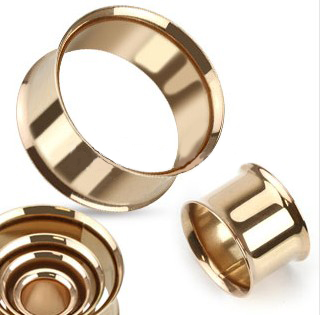 Rose Gold IP Over 316L Surgical Steel Double Flared Flesh Tunnels