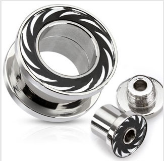 316L Surgical Steel Black Swirl Rimmed Screw-Fit Tunnel