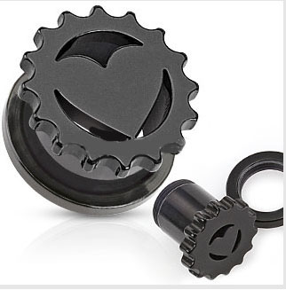 Solid Acrylic Heart Inside Gear Screw-Fit Tunnel