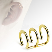Gold Plated Over 316L Surgical Steel Fake Cartilage 'Clip-On' Triple Closure Ring