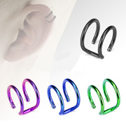 Titanium Anodized Fake Cartilage 'Clip-On' Double Closure Ring