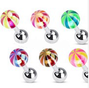 316L Surgical Steel Tragus/Cartilage Barbell with Assorted Color Metallic Coating Candy Ball