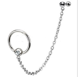 316L Surgical Steel Chain Linked Single Gemmed Captive Bead Ring with Cartilage/Tragus Barbell