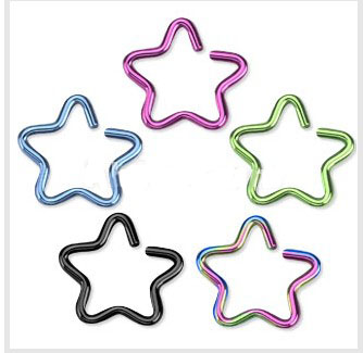 Titanium Anodized Fake Cartilage 'Clip-On' Single Closure Star Ring