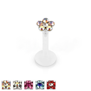 LXSI05 6 Gem Flower Top Flexible Shaft Labret Monroe Studs