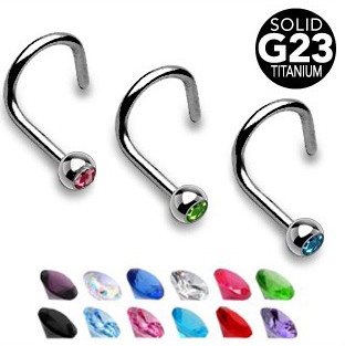 Grade 23 Solid Titanium Nose Screw with 2mm Press Fit Gem